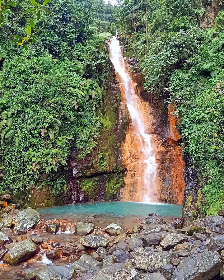 Sebelum menikmati keindahan air terjun ini Anda harus berjalan kaki terlebih dahulu selama 15 menit dari area parkir. Jalur trekking ini membentang sepanjang 400 meter dengan medan menanjak dan menembus hutan.