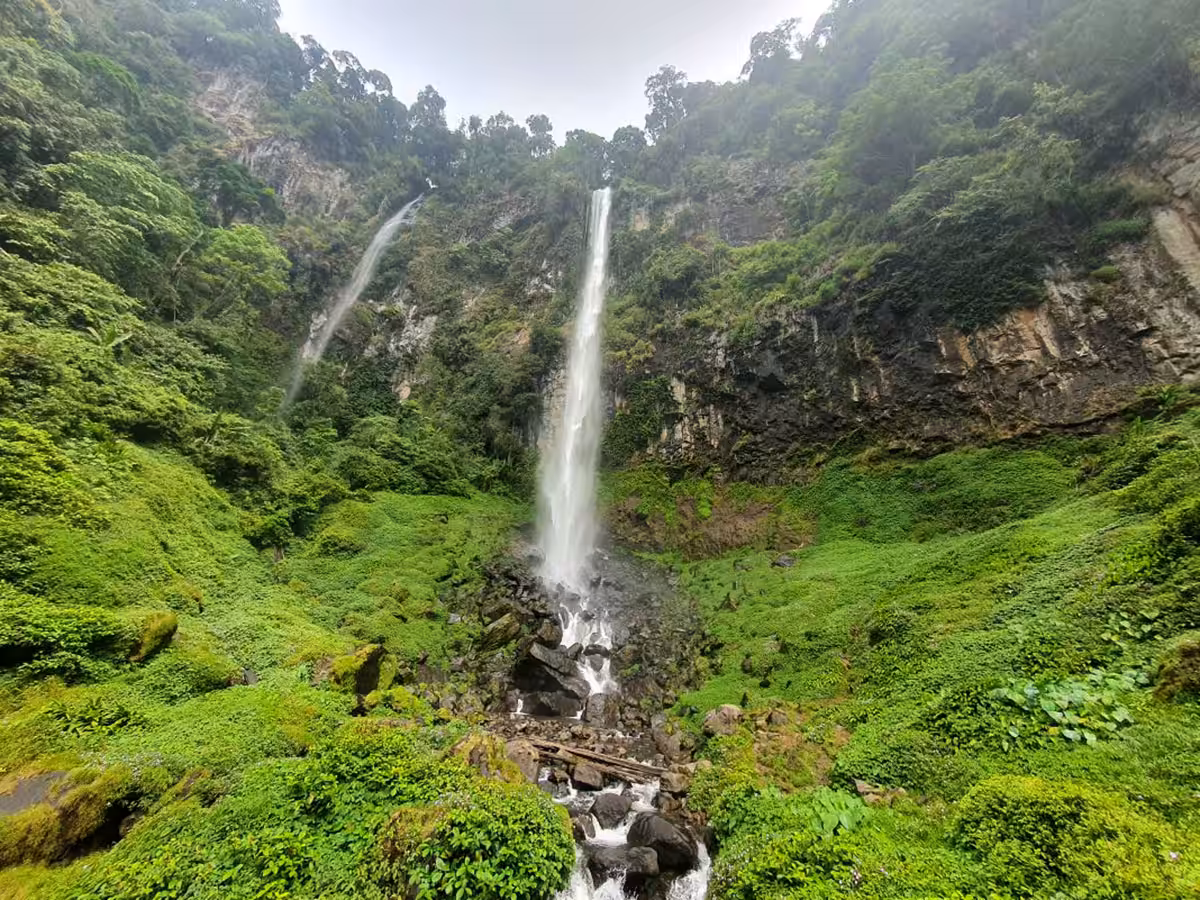 Air terjun yang jatuh dari ketinggian sekitar 100 meter menciptakan tempias air dengan jangkauan yang luas. Wisatawan pun bisa merasakan kesegaran airnya dari jarak jauh.