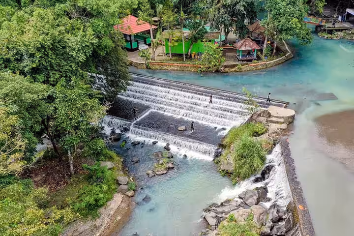 Warna biru tosca air sungai serta beberapa air terjun kecil yang ada membuat tempat ini sangat menarik untuk Anda kunjungi. Anda bisa puas bermain air di kawasan wisata ini sambil mencoba sejumlah wahana seru.