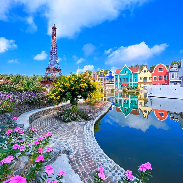 Anda bahkan bisa naik kano keliling danau buatan, yang akan mengingatkan Anda pada suasana kanal di Amsterdam dan Venice. Selain itu, ada juga berbagai cafe cantik dengan interior dan eksterior ala Eropa.