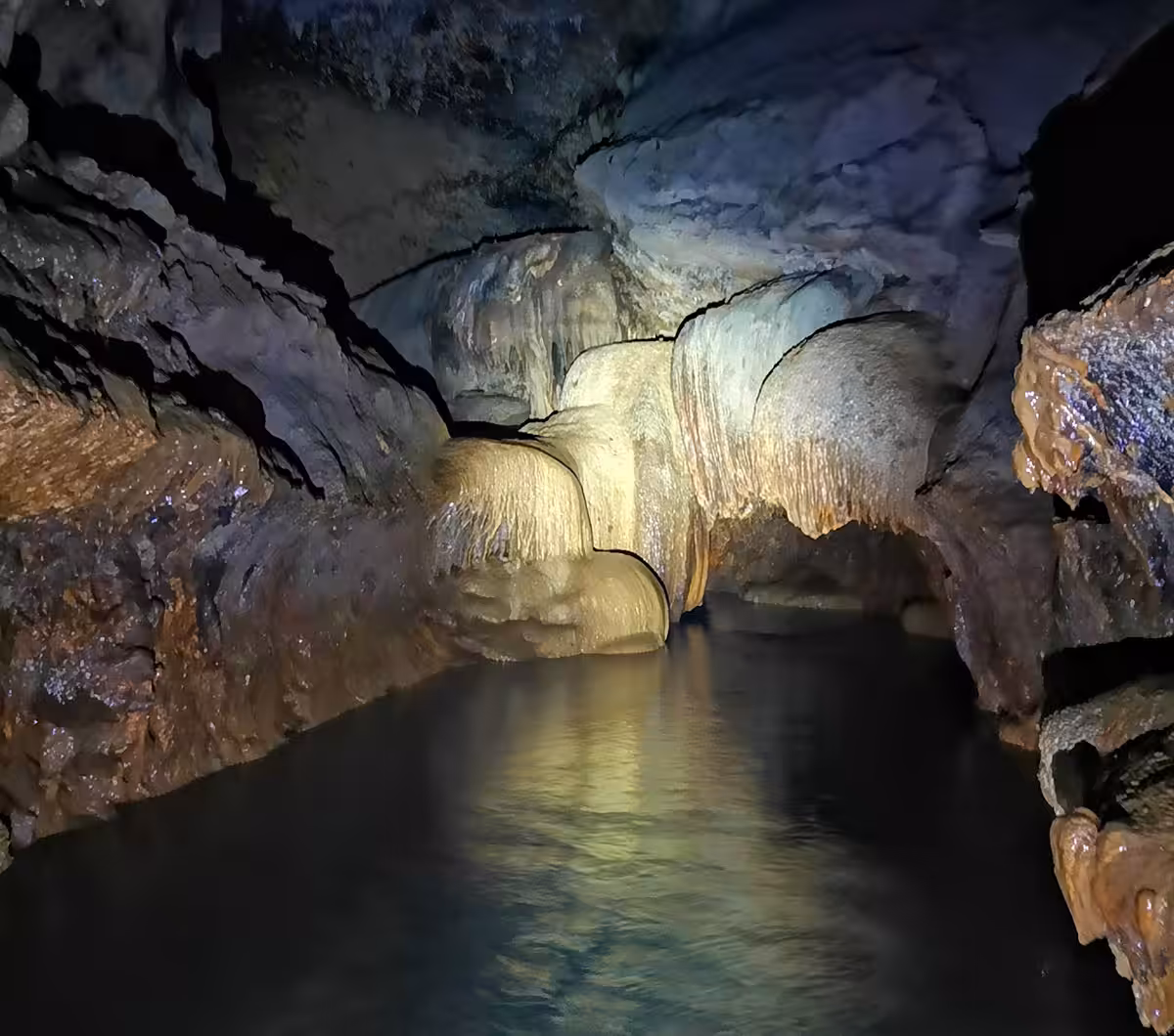 - sungai bawah tanah yang mengalir di sepanjang goa yang mana airnya sangat jernih, bersih, namun arusnya kuat