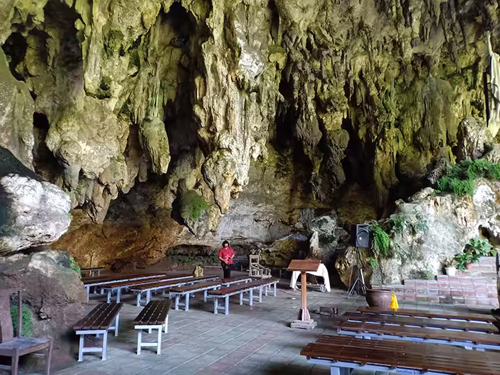 Itu semua karena gua ini berlokasi di tempat yang jauh dari kebisingan pusat kota. Tak hanya itu, gua ini pun penuh dengan ornamen alami yang menambah kekhidmatan dalam berdoa.