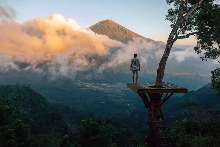 Destinasi ini berupa perbukitan dengan pemandangan indah. Tempat wisata hits ini sering menjadi perbincangan oleh banyak netizen di media sosial lantaran suguhan panorama sekitarnya yang juara. Tepatnya view Gunung Agung dari kejauhan.