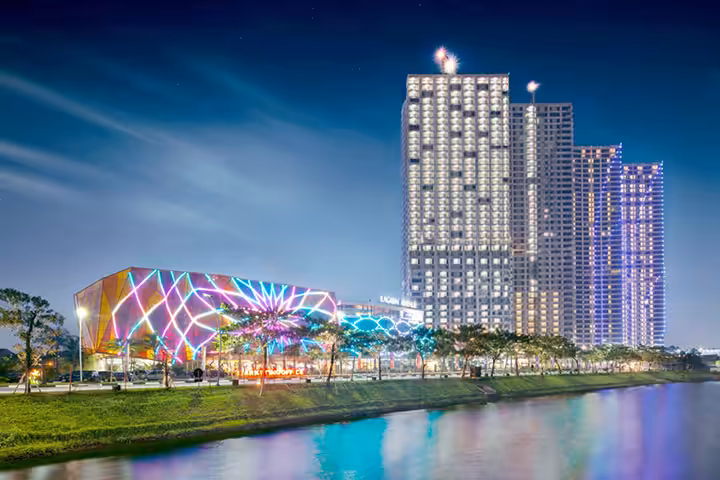 Saat malam hari, Anda juga bisa melihat pertunjukan air mancur menari. Sementara itu, mall Lagoon Avenue akan tampak semarak dengan lampu berwarna-warni. Indah sekali!