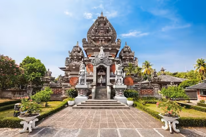 Demikian juga dengan menara sudut yang tersebar di kompleks wisata museum ini. Di bagian depan, terdapat sebuah taman yang mana taman dan bangunan ini dibuat dengan tema cerita Ramayana.
