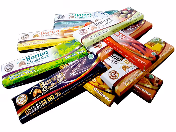 Bahan coklatnya berasal dari biji coklat asli Palu dengan berbagai variasi rasa pilihan. Mulai dari rasa original, dark choco, mede, green tea, hingga rasa cabai semua ada.
