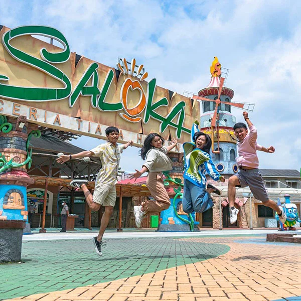 • Tour dilanjutkan ke Saloka Theme Park, disana Anda akan menjumpai berbagai wahana kekinian.