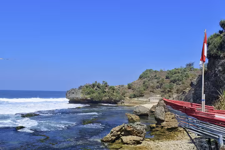 Jika biasanya Anda menjumpai pantai yang kaya akan batu karang hanya di Bali, namun pantai di Jogja ini justru menyuguhkan batu karang di tiap sudutnya.