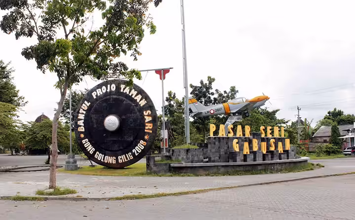 Jika sedang pergi menuju Pantai Parangtritis, jangan lewatkan perjalanan Anda untuk singgah di sebuah pasar dengan bangunan arsitektur yang unik. Pasar Seni Gabusan namanya.