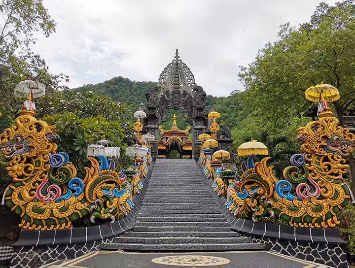 Sama seperti Pura Tanah Lot, pura ini menawarkan nuansa yang menenangkan. Salah satu alasannya karena pura ini terletak di tengah hutan di kaki Bukit Pemuteran.