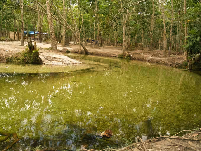 Genangan dan aliran air yang berwarna kehijauan ditambah dengan bebatuan alami merupakan perpaduan yang sempurna. Sama indahnya dengan sungai bawah tanah di kawasan wisata Goa Pindul Jogja.