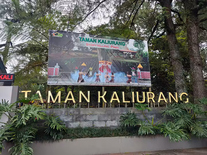 Seperti namanya, taman ini berada di daerah Kaliurang yang ada di kaki Gunung Merapi. Oleh sebab itu, kawasan ini sangat sejuk, asri, dan menenangkan dengan banyak pepohonan rindang di tiap sudutnya.