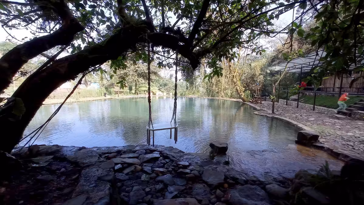 Salah satu yang menjadi favorit adalah ayunan yang tergantung di salah satu dahan pohon besar. Sensasi berayun di tepi kolam sambil menikmati pemandangan alam sekitar akan memberikan hasil foto yang menakjubkan.