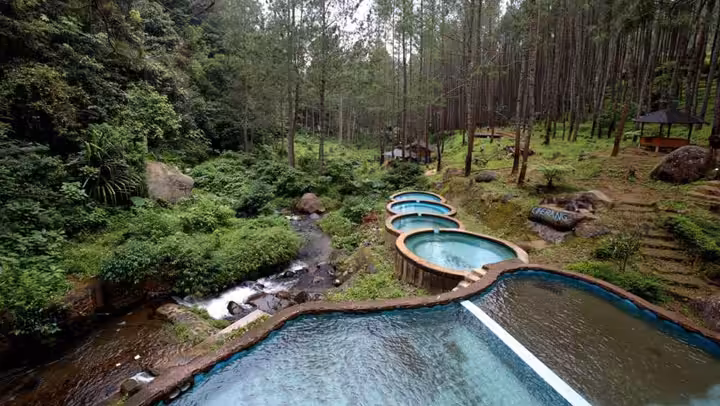 Ingin merasakan suasana berenang yang seru dan berbeda, datang saja ke Balong Geulis. Kolam renang ini termasuk salah satu tempat wisata di Sumedang instagramable karena pemandangannya yang cantik.