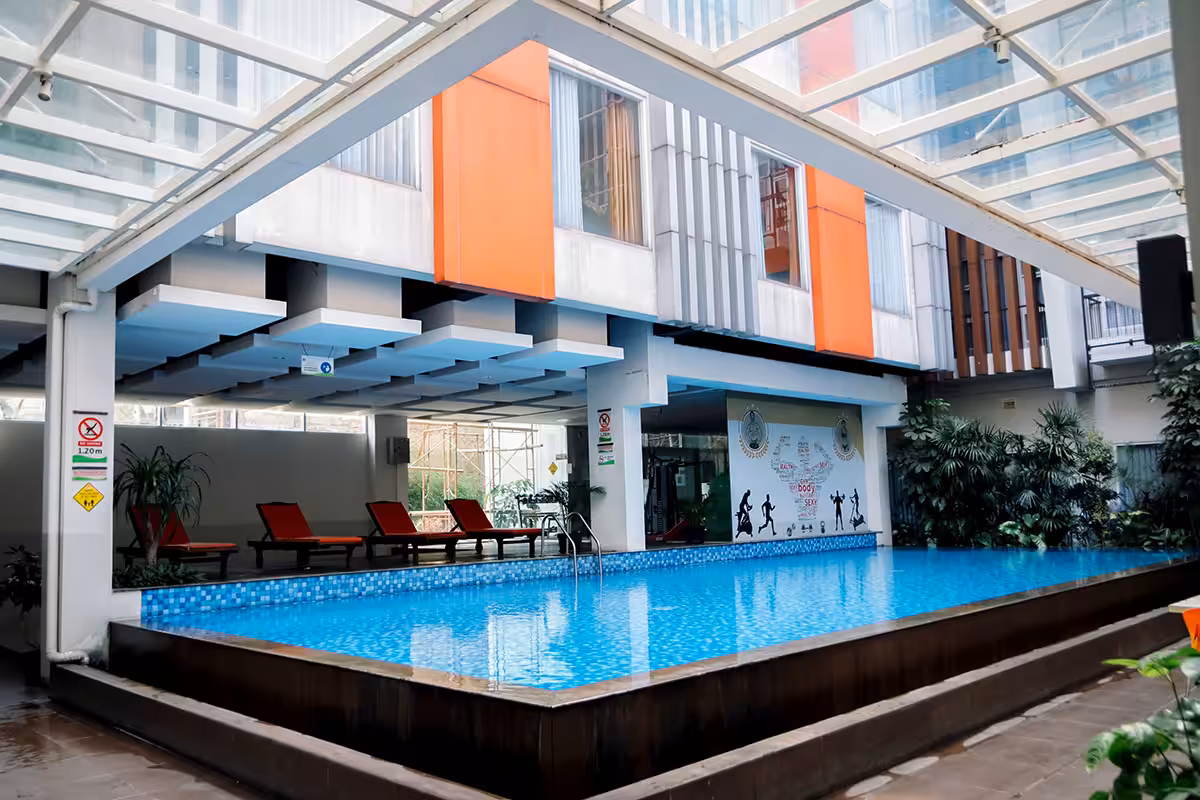 - berenang dan bersantai di kolam renang outdoor yang luas dan bersih; Anda bisa menikmati pemandangan Kota Bandung sambil berendam di air yang sejuk