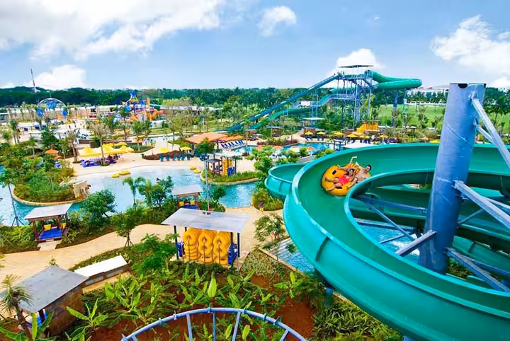 Taman wisata air ini mampu memberikan kesejukan sesaat di setiap akhir pekan Anda. Temukan keceriaan Anda dan keluarga dengan bermain wahana di sini.
