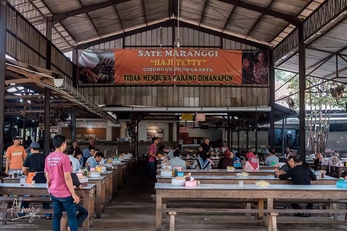 Rekomendasi wisata kuliner Purwakarta yang pertama, Anda bisa Anda mulai dengan mengunjungi Sate Maranggi Haji Yetty Cibungur. Tempat ini sudah sangat terkenal dengan kelezatan satenya sejak tahun 1990-an.